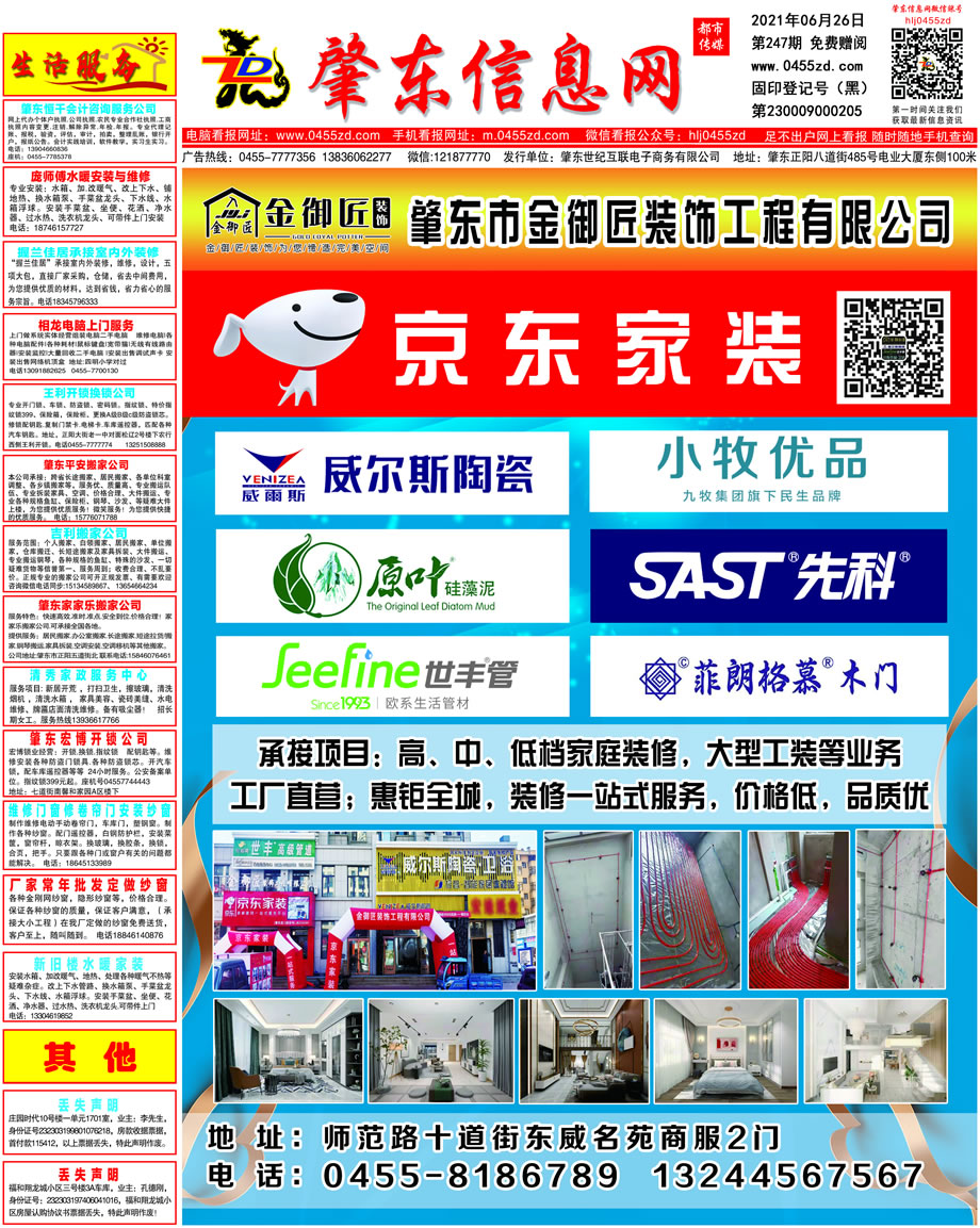 肇東信息網DM報紙2021年6月26日第247期