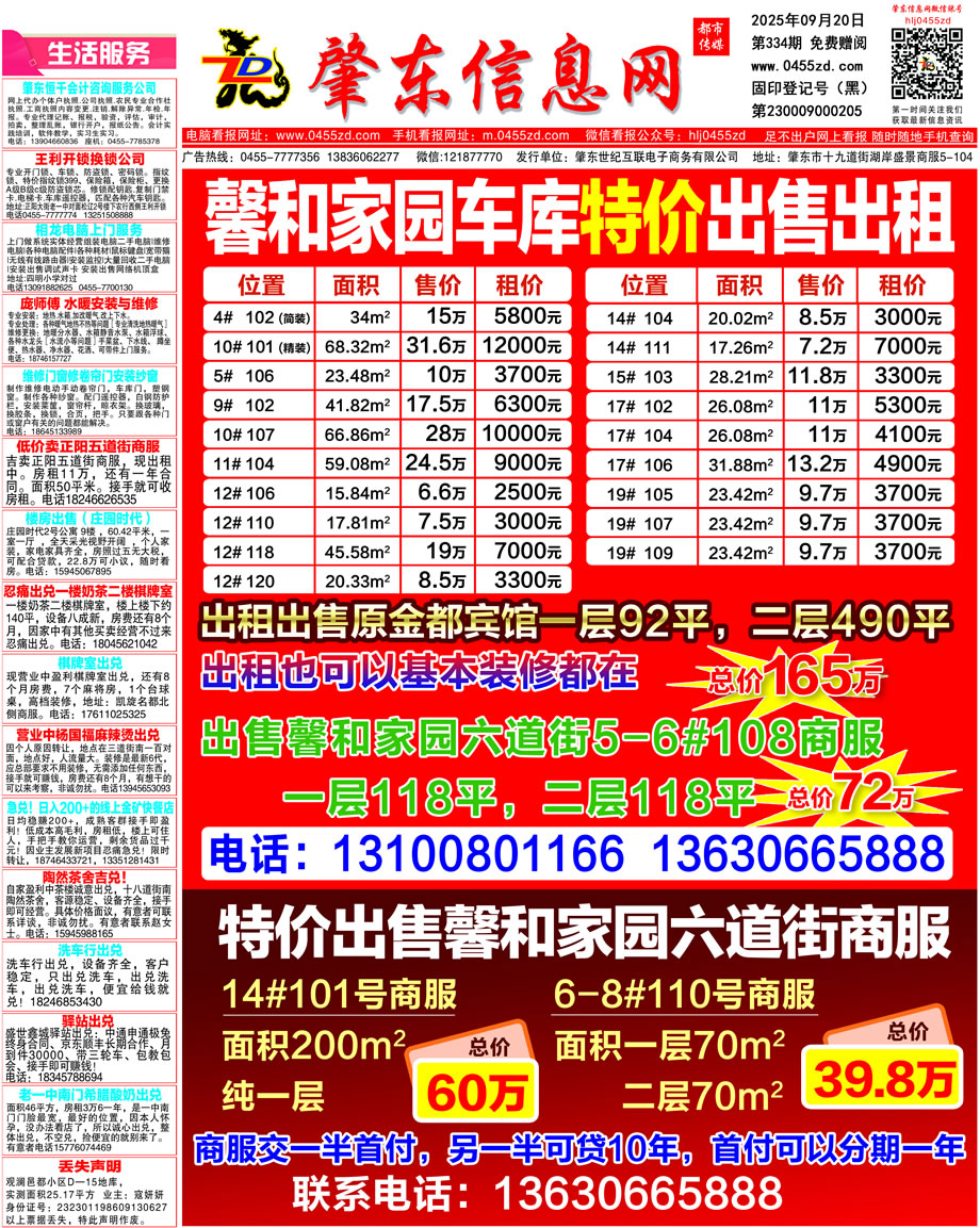 肇東信息網DM報紙2025年9月20日第334期