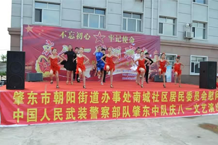 | 7月30日,朝陽街道辦事處南城社區(qū)的黨員干部及志愿者們來到市武警中隊舉辦了“慶八一、迎國慶”慰問演出。演出現(xiàn)場,小朋友們表演的拉丁舞熱情洋溢,架子鼓火爆震撼,歌... |
