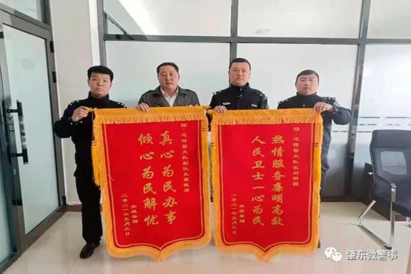 在黨史學習教育和隊伍教育整頓中,巡特警大隊始終將人民群眾放在心中最高位置,切實將“我為群眾辦實事”走深走實。近日,巡特警大隊收到肇東市居民關某送來的兩面印有“真心為民辦事 傾心為民解憂”“熱情服務廉明高效 人民衛士一心為民”的錦旗,以表達巡特警隊員在短時間內幫助其找回遺失物品表達感激之情。