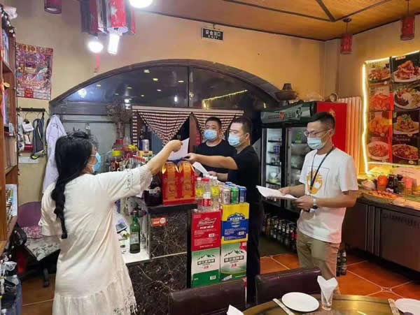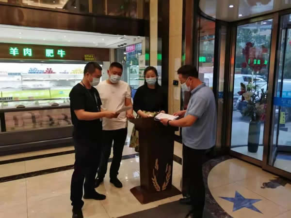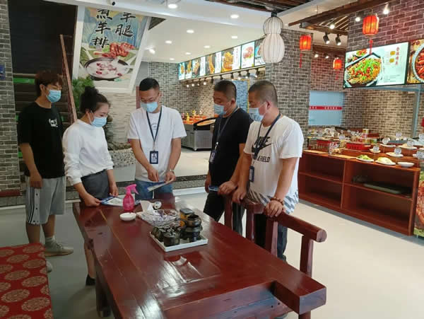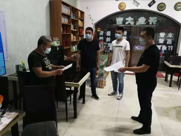 下午13時,我與志州對轄區2家大型餐飲場所進行了日常巡查,局里負責督導的兩位同志就趕到啦。我們4個人一起投入疫情防控工作中。