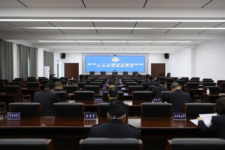 局黨委班子成員,各科所隊主要負責同志在主會場參加宣講報告會。城鄉(xiāng)派出所長通過視頻會議系統(tǒng)在本單位分會場參加宣講報告會。