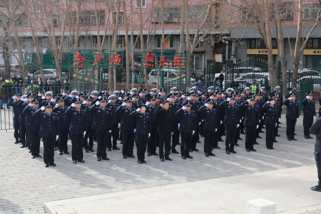 局班子成員帶領全體民輔警面向紀念碑,重溫入警誓詞。