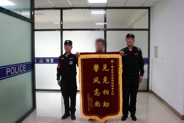 8月10日,齊齊哈爾市民張先生來(lái)到肇東市公安局巡特警大隊(duì),將一面印有“見(jiàn)危相助,警風(fēng)高尚”的錦旗送到巡特警隊(duì)員手中,以表感激之情。