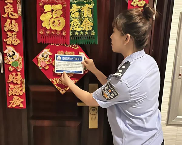 活動中,警格員針對下沉小區住戶長期不在家的情況,貼心的在門上粘貼一張預約卡,方便業主回家后與警格員聯系,并商定入戶時間和開展反詐宣傳、日常生活安全知識講解,進一步解決警格員入戶難問題,方便警民聯系,切實幫助群眾解決生活和工作的困難。
