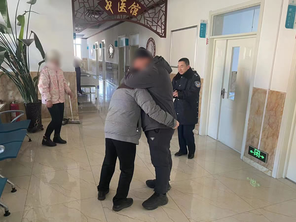 2月26日早上7時(shí)許,五站派出所值班民警接五站鎮(zhèn)東安村村民安某報(bào)警稱,在五站鎮(zhèn)東安村道口發(fā)現(xiàn)一人躺在路邊溝里,生死不明。民警立即出警,在五站鎮(zhèn)301國(guó)道與東安村路交叉口南側(cè)溝里發(fā)現(xiàn)一女子躺在樹下,經(jīng)詢問(wèn)該人神志清醒,生命體征尚好,但由于受凍時(shí)間較久,無(wú)法說(shuō)明姓名、地址及家人情況,手機(jī)關(guān)機(jī)狀態(tài),民警立即將該女子送往五站鎮(zhèn)衛(wèi)生院緊急救治。隨即民警通過(guò)僅有的信息查詢到該女子名叫呂某軍,戶籍地址為五大連池市四平鄉(xiāng)某村居民。民警聯(lián)系到其父親呂某利,呂某利稱女兒患有抑郁癥,于2024年2月25日走失,全家人正在四處尋找呂某,正不知所措時(shí)接到民警電話,呂某利和女子丈夫王某看到呂某安然無(wú)恙,已經(jīng)脫離險(xiǎn)境時(shí),不勝感激,抱頭痛哭。家人對(duì)民警的救助行為表示萬(wàn)分感謝,并表示將在今后加強(qiáng)關(guān)心照顧,避免再次走失,隨即該女子被其家人接回。