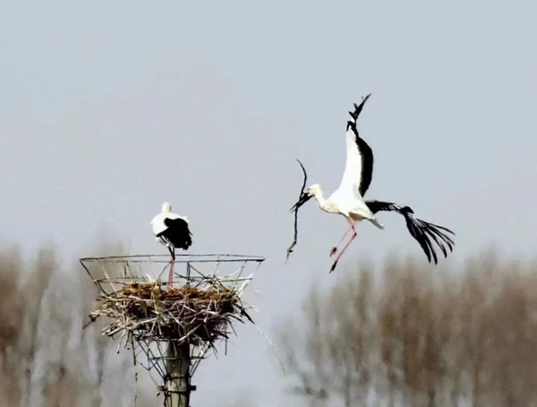 隨著天氣漸暖,大批珍稀候鳥將在北遷中飛抵黑龍江省肇東市千鶴島風景區。其中,有“鳥界國寶”之稱的東方白鸛,也將在此筑巢繁殖。近日,為了迎接東方白鸛的到來,風景區工作人員增建了三十余處人工鳥巢。