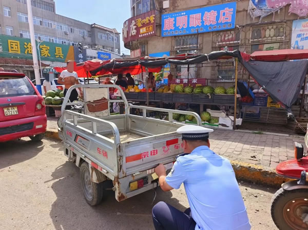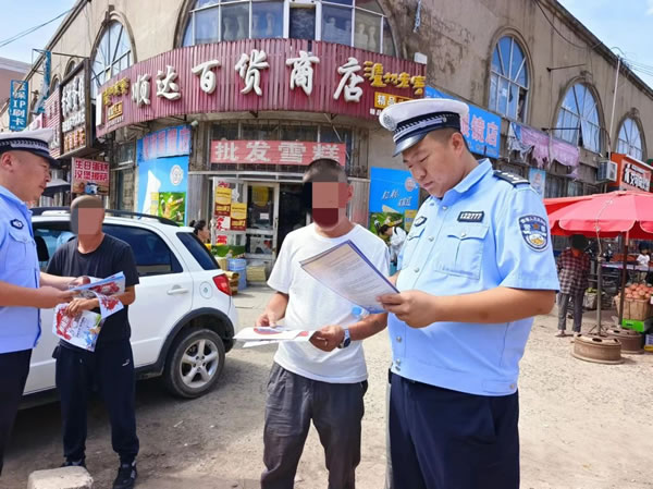 在昌五鎮中心商業區,這里聚集了周邊鄉鎮眾多村屯群眾在此購物、游玩,人流、車流不息。宣傳民警深入到集市、商場等人員密集區域,結合當前交通安全宣傳工作重點活動實際,通過大篷車巡回宣講、懸掛宣傳條幅、發放交通安全宣傳資料等多種宣傳方式,與群眾面對面溝通,、解答群眾關于交通法律法規方面的疑問,向廣大農民群眾宣傳“一盔一帶”的重要性和農用車違法載人、客貨混載、三超一疲勞、無牌無證、酒后駕駛等交通違法行為的危害性。宣傳講解《黑龍江省電動車管理條例》相關內容,教育引導農民群眾要遵守交通安全法律法規,提高交通安全意識,自覺抵制各類交通違法行為。爭做文明出行的踐行人和傳播者。