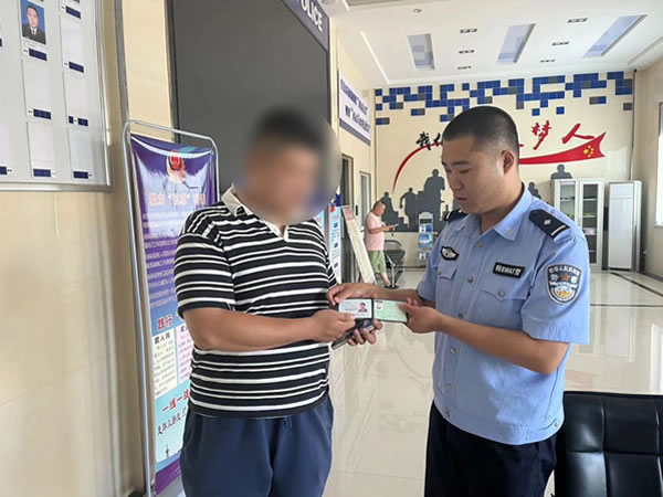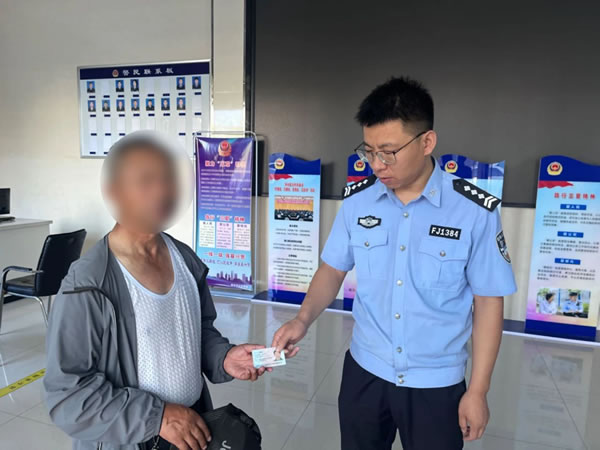 “警察同志,我撿到一個身份證,你們幫忙聯系一下失主吧,我這也聯系不上啊。”8月8日,一居民在利民城附近撿到一張身份證,并將證件送到轄區(qū)南城派出所。值班民警王鑫立即查看身份證,得知失主是戶籍地在太平鄉(xiāng)的居民王某山,根據身份信息進行查詢,在得到有效聯系方式后,民警迅速撥通電話與失主取得聯系,告知其身份證已被熱心群眾撿到,不要著急,可以隨時到派出所來認領,并告訴其派出所的詳細地址。