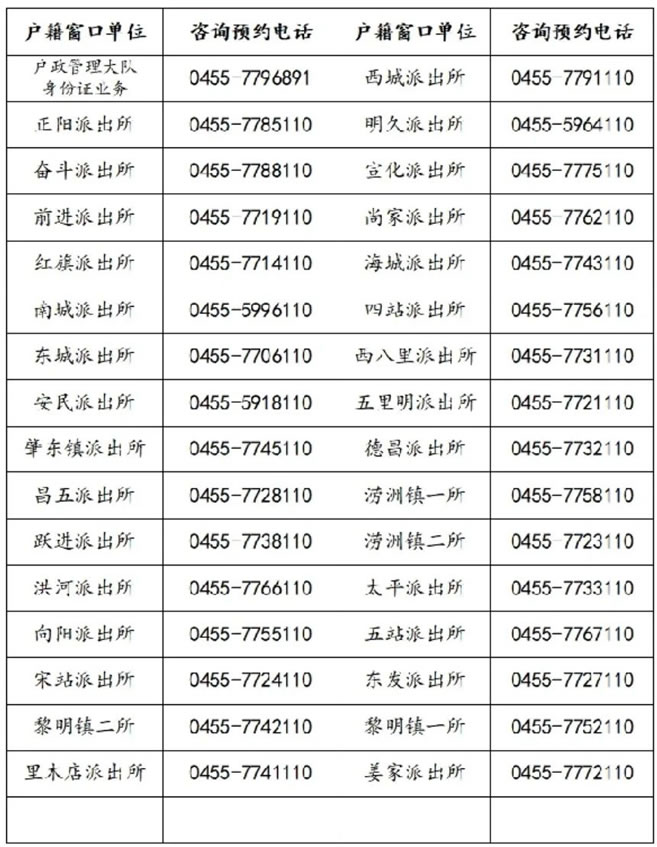 附件:公安機關戶籍窗口單位咨詢及預約電話