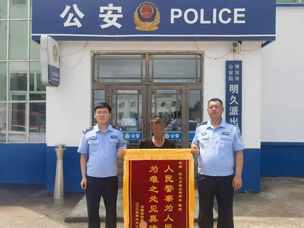 看到孫子平安歸來,紀先生眼含淚花不停地向民警道謝:“感謝警察同志幫我找回孩子,謝謝你們,謝謝你們!”6月15日,紀先生專門將一面印有“人民警察為人民,為難之處見真情”的錦旗送到明久鄉派出所,表達對民警的感激之情。