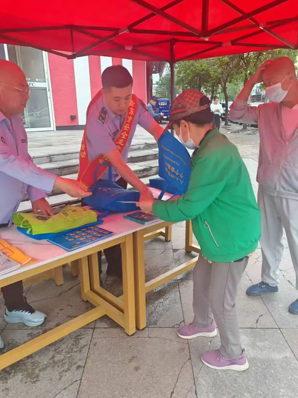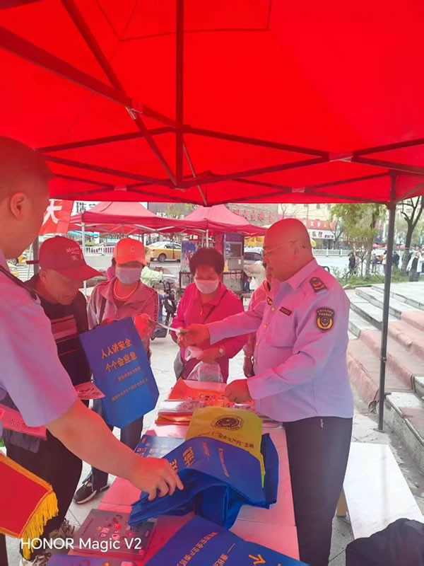 肇東市市場監管局特種設備安全監察股股長勾成文和特種設備監察人員,在商業聚集區設立宣傳臺,懸掛宣傳橫幅,發放相關宣傳資料,向過往群眾宣貫《中華人民共和國特種設備安全法》、《黑龍江省電梯安全條例》、《電梯維護保養服務規范》等相關法律法規和安全使用知識。現場解答群眾提問、為群眾普及知識,答疑解惑,引導群眾積極參與特種設備安全群防共治,切實提高群眾特種設備安全意識和應急防范能力。
