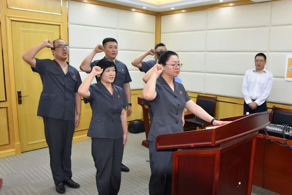 △新任職人員正在進(jìn)行憲法宣誓