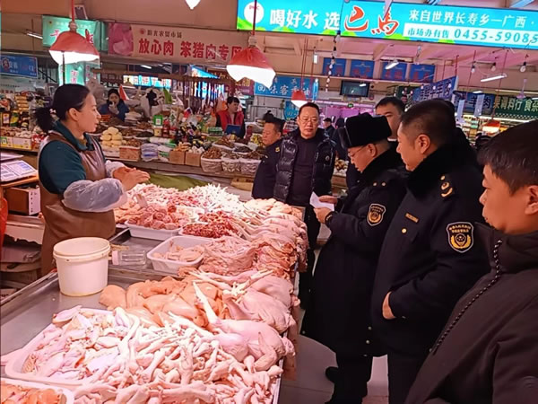 元旦佳節將至,為確保我市群眾采購安全健康的農產品,肇東市農業農村局執法大隊與肇東市公安局食藥環偵大隊、肇東市市場監督管理局三部門,共同對肇東市陽光農貿大廳以及部分肉類商店進行了農產品質量安全大檢查,全力守護人民群眾“舌尖上的安全”。" />
