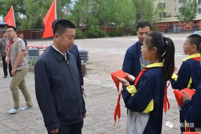 節(jié)日的校園處處歡聲笑語。進(jìn)入校園,四名小學(xué)的學(xué)生代表熱情地為李延春獻(xiàn)上鮮艷的紅領(lǐng)巾,以表歡迎。