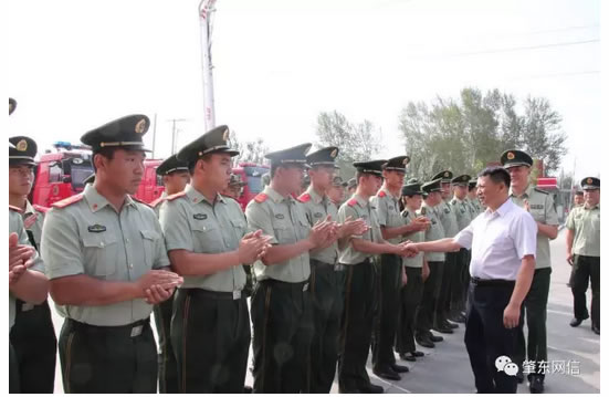 慰問中,張偉志說,一直以來,全市廣大消防官兵擔負著我市搶險救災的重要職責,你們恪盡職守,忘我工作,時刻奮戰在第一線,尤其在各類急難險災害和社會突發事件中,沖鋒在前、毫不畏懼,召之即來、來之即戰、戰之即勝,為肇東經濟建設、為保衛全市人民群眾的生命財產安全做出了突出貢獻,我代表市委市政府和全市人民對你們的辛勤付出表示感謝,祝你們節日快樂!