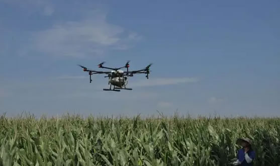 7月31日,肇東市洪河鄉(xiāng)英杰玉米種植合作社迎來無人植保機(jī)進(jìn)行飛防作業(yè)。隨著農(nóng)用無人植保機(jī)在操作飛手宋健的遙控下,將細(xì)霧般的藥液噴灑到農(nóng)作物各個(gè)層面,每小時(shí)作業(yè)量達(dá)55畝,作業(yè)效率是人工的60倍。