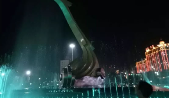 噴泉的中央是代表肇東精神的金龍雕塑,昂首著直沖云霄。千變萬化的噴泉柱與金龍雕塑在一起,似飛龍在天,如蛟龍得水。那長長的一躍而起的噴泉水柱變成水霧,音樂噴泉整個過程持續約30分鐘,在優美的音樂中,平靜的河水仿佛有了生命,縱橫交錯,如同舞動的音符,不管從哪個角度都是一派聲、光、水組合而成的靈動景象,五彩斑瀾,美輪美奐,宛如人間仙境。