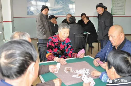 去年12月18日,老人們在活動室打牌娛樂。