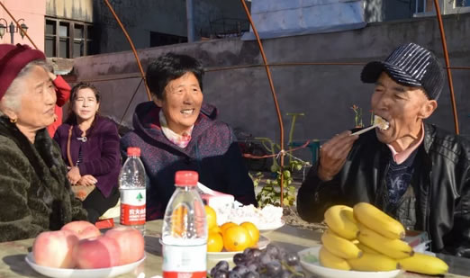 信通社區為老人們送去了香蕉、蘋果、葡萄等水果,特意定做了一個蛋糕,祝福老人們幸福平安、健康長壽。