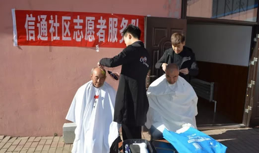 信通社區志愿者服務隊為老年公寓的老人們進行了免費理發,解決了許多高齡老人出門理發難的問題。