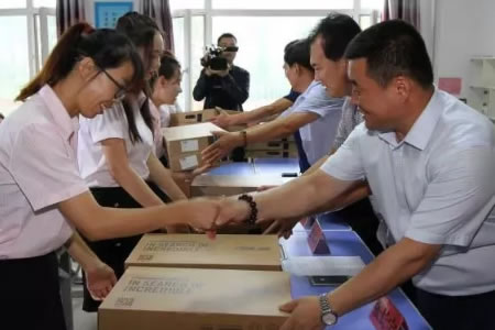 據介紹,本次活動東興集團為明久中心校捐贈筆記本電腦42臺。近年來,東興集團堅持“求生存、謀發展、做奉獻”,致力于敬老、助學、扶貧、幫殘、救急等公益事業,先后為明久中心校捐贈了投影儀、電腦、書桌、書包等,出資修葺了教學樓、操場,累計捐贈逾100萬元,在明久鄉基礎設施建設上投入500多萬元。