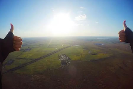 據了解,俱樂部教練團隊均為有著數千次跳傘經驗及擁有國際認證的《雙人跳傘教練證書》的專業跳傘教練組成。可以為各地游客提供雙人高空跳傘體驗、單人高空跳傘培訓、單人跳傘等多項跳傘服務。當天上午,有十余名毫無跳傘經驗的游客,乘坐“大棕熊100”型飛機,升至3200米高空后,與教練固定在一起,一躍而下,在經歷了35秒左右的自由落體運動后,傘包順利打開,俯瞰龍江大地美景,然后安全降落在指定地點。